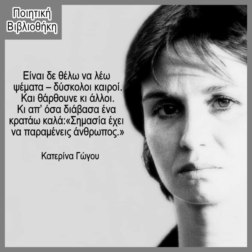 κατερίνα γώγου ποιήματα. Η Κατερίνα Γώγου ήταν ένας ευαίσθητος ακέραιος άνθρωπος που έμπλεξε στα αδιέξοδα της αναρχικής σκέψης που υποτίθεται σε παροτρύνει να τα ανατρέψεις όλα χωρίς να σου δείχνει ούτε τον τρόπο ούτε πολύ περισσότερο. Δεν έκρυψε σε κανένα από τα ποιήματα της την απέχθεια για την άδικη και την καθωσπρέπει κοινωνία που έζησε και στην οποία τόσο ασφυκτιούσε. Δε μένει κανείς σαυτή την πόλη.